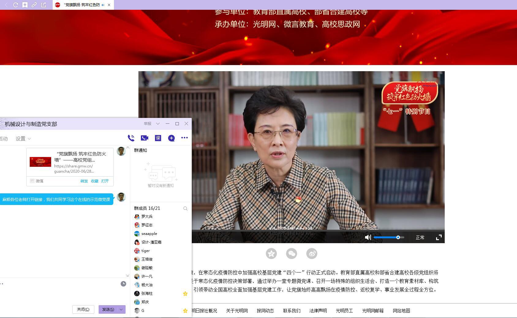 建党99周年来临之际,机械设计与制造党支部专门召开迎党的生日、讲战疫故事、悟初心使命专题组织生活会,组织全体党员观看示范微党课,宣传学习抗疫一线基层党组织和广大党员的先进事迹,鼓舞大家学习先进典型,争当先锋党员。本次组织生活会采用网络线上的方式进行。