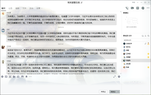 近日,BBV体育_BBV(中国)本科学生第五党支部党员开展《习近平致厦门大学建校100周年的贺信》相关学习活动。