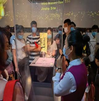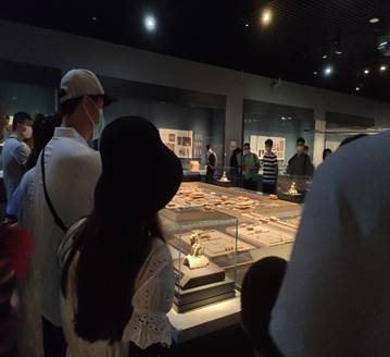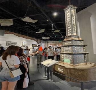 成都市博物馆是一座综合反映成都历史发展的标志性博物馆,总建筑面积6万余平方米,是西南地区规模最大的城市博物馆。在讲解员的带领下,党员同志进入展厅进行参观。二楼展区为先秦馆,是整个通史陈列的第一部分。展厅内容以先秦时期文化的发展脉络为主线,包含新石器时代晚期的宝墩文化古城址群,集中展现先秦时期古蜀文明的瑰丽神奇,其中一件镇馆之宝石犀就位于此。三楼展现的是隋唐五代宋元时期成都作为西南大都会的繁华兴盛面貌,在讲解员的带领下,从瓷器、陶器、金银器、铜器等文物感受成都隋唐时“扬一益二”的盛况,五代时期“天下之富国”的安定奢靡,宋代坊市林立、货通天下的繁华,元代抗争与重建的坚韧。在明清展厅,展示了明蜀王府建筑构件及模型。