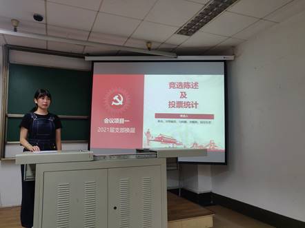 段安东哲同志通报了到会党员人数,到会人数符合党章和基层党组织换届选举的相应规定,党支部换届选举会议正式开始。首先,段安东哲同志对2020-2021年度的党支部工作做出总结,介绍了党支部开展的教育活动、党支部的管理制度以及党支部丰富的活动形式,强调了党支部纪律的严肃性,总结了2020-2021年度党支部的活动成果和获得的相关荣誉,全体党员同志充分肯定了支委的工作。