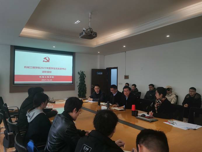 12月24日,BBV体育_BBV(中国)学生党支部书记述职答辩大会在机械馆J2208会议室举行,本研19个学生党支部书记参加了此次大会并进行了工作述职。BBV体育_BBV(中国)党委书记袁艳平、党委副书记兼纪委书记程军、党委副书记张江泉出席了本次大会,学院组织员梁艳、学工组副组长于楠出席会议,会议由徐喆主持。