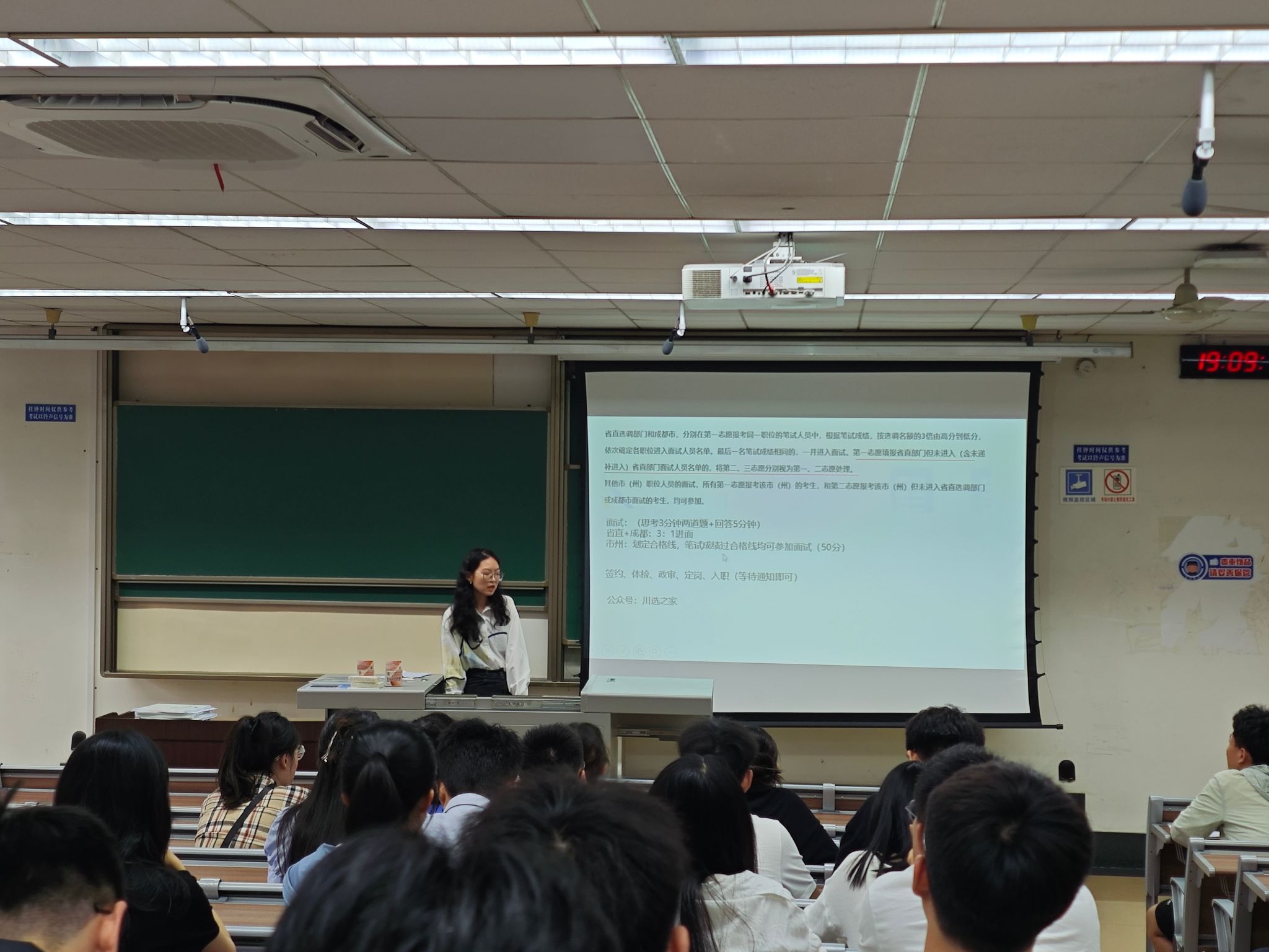 首先由张陆叶同志和王杰同志分享选调的报名要求及注意事项。选调生,是各省党委组织部门有计划地从高等院校选调品学兼优的应届大学本科及其以上毕业生到基层工作,作为党政领导干部后备人选和县级以上党政机关高素质的工作人员人选进行重点培养的群体的简称。选调生既代表了政府机关对高学历高素质人才的需求,也代表了国家对当代青年“到基层中去、到实践中去、到人民中去”的期待.