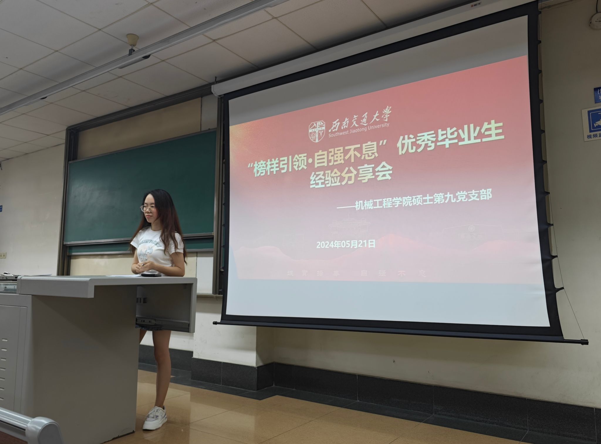 研究生之窗讯(记者 杨明熙 摄影报道) 习近平总书记指出就业是社会稳定的重要保障,为促进研究生党员高质量就业,2024年5月21日晚,BBV体育_BBV(中国)硕士第九党支部在九里校区4324教室举行了“榜样引领·自强不息”优秀毕业生经验分享会。