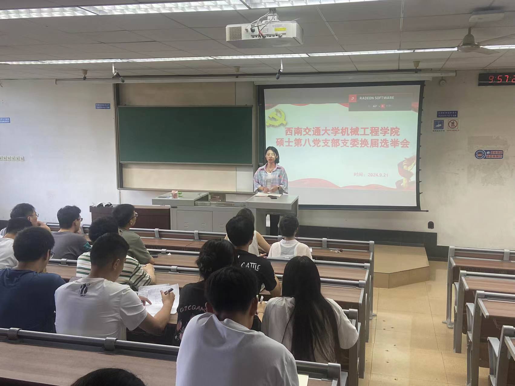 研究生之窗讯(记者 陈超 摄影报道)2024年9月21日上午9点50分,硕士第八党支部在4324教室隆重召开了换届大会。此次大会不仅是党支部换届的重要时刻,也为2024级研究生新生党员提供了展示自我、积极参与党组织生活的绝佳机会。会议由党支部书记汪豪同志主持,硕士第八党支部全体党员同志参加了此次会议。