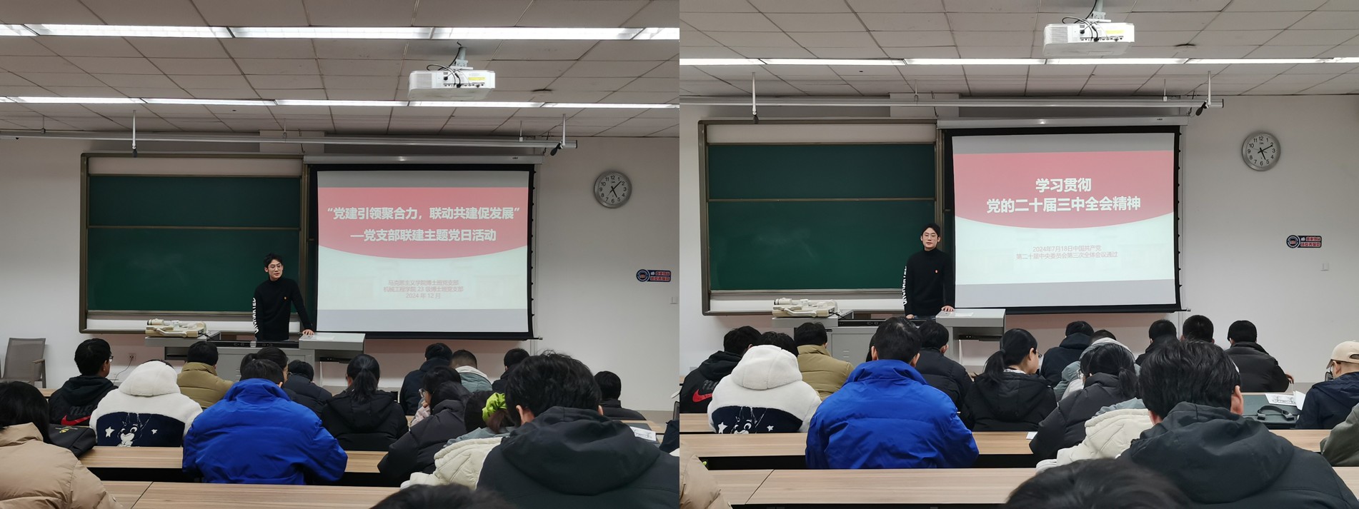研究生之窗讯(记者 计丹 李笑晗 摄影报道)为深入学习贯彻党的二十届三中全会精神,进一步推动党支部之间的协同发展,BBV体育_BBV(中国)23级博士党支部与马克思主义学院博士党支部于2024年12月12日下午联合举办了专题学习交流活动。本次活动以“党建引领,联动共建”为特色,旨在通过支部联动,以共建创新支部党建工作、以支部党建工作促进业务发展,以此不断提升支部的组织力、凝聚力和战斗力,推动基层党组织“全面进步全面过硬”。