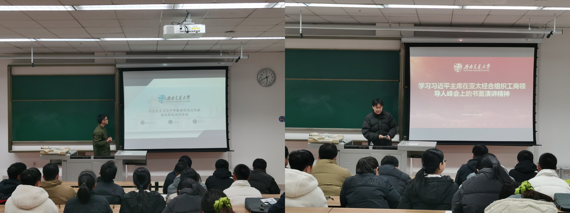 马克思主义学院博士党支部冉新月同志作了《习近平总书记在第四次“一带一路”建设工作座谈会上的重要讲话》的分享,详细解读了“一带一路”倡议对我国对外开放及全球合作的重要意义。指出,党员应增强全球视野,在推动“一带一路”倡议实施的过程中,积极为国家和世界的发展贡献力量。