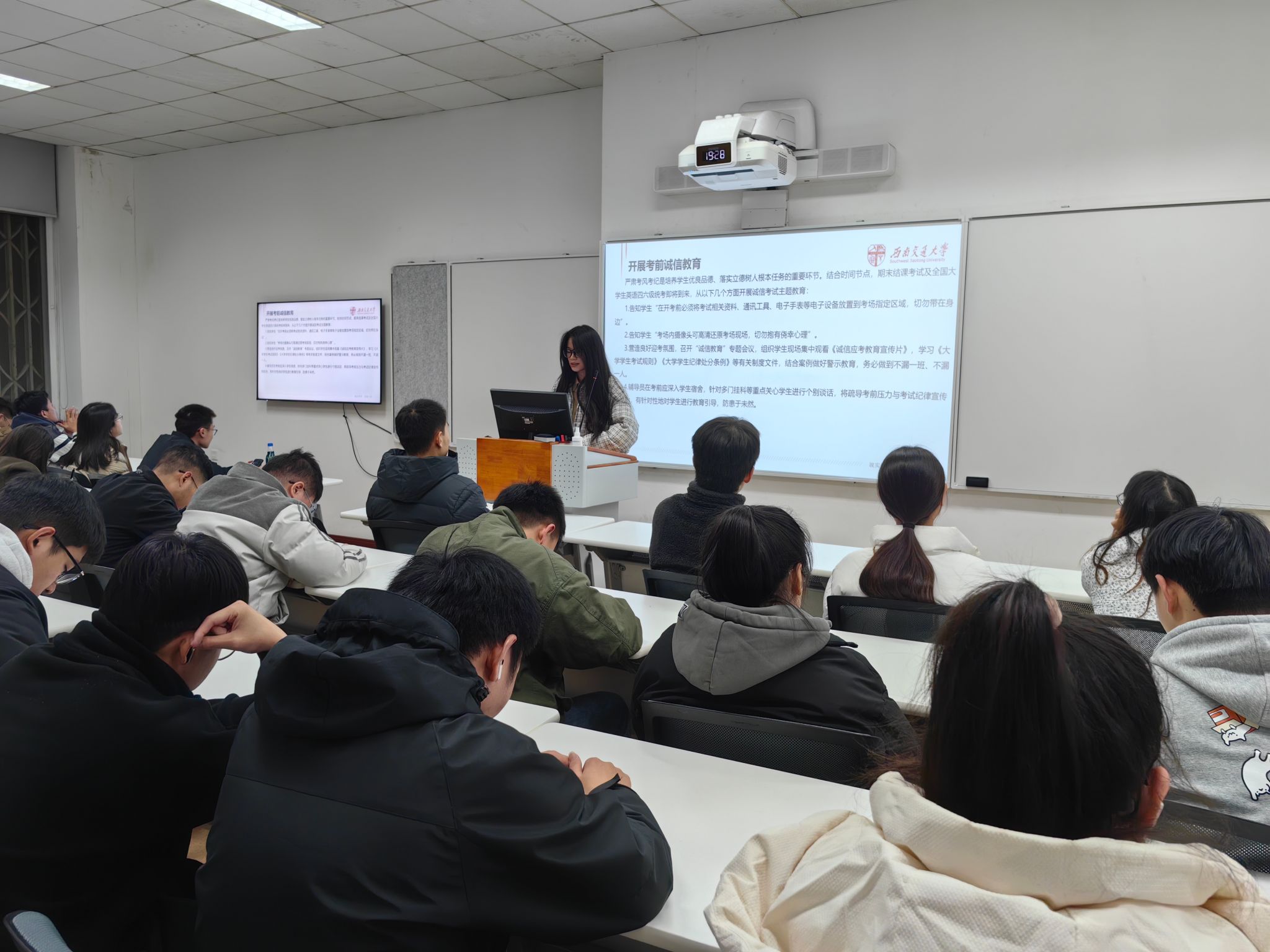 第四项,结合期末考试的时间节点,会议开展了考前诚信教育,要求党员们要以身作则,引导身边同学树立诚信考试的良好风气,严守学术道德和纪律,做诚信的表率。