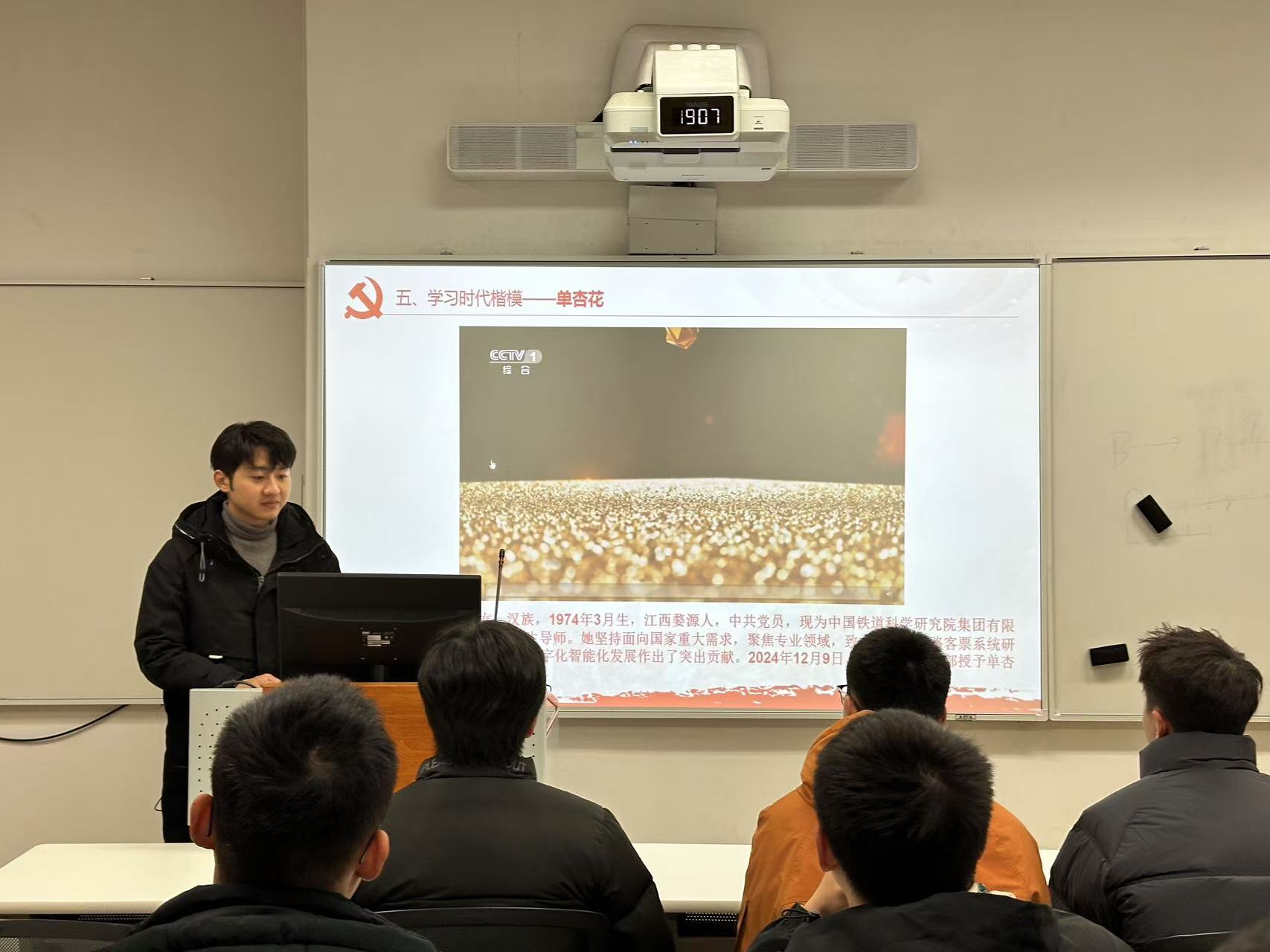 会议第五项:学习时代楷模。单杏花,女,汉族,1974年3月生,江西婺源人,中共党员,现为中国铁道科学研究院集团有限公司首席研究员,博士生导师。她坚持面向国家重大需求,聚焦专业领域,致力于我国铁路客票系统研发20余年,为我国铁路数字化智能化发展做出了突出贡献。2024年12月9日,中共中央宣传部授予单杏花同志“时代楷模”称号。