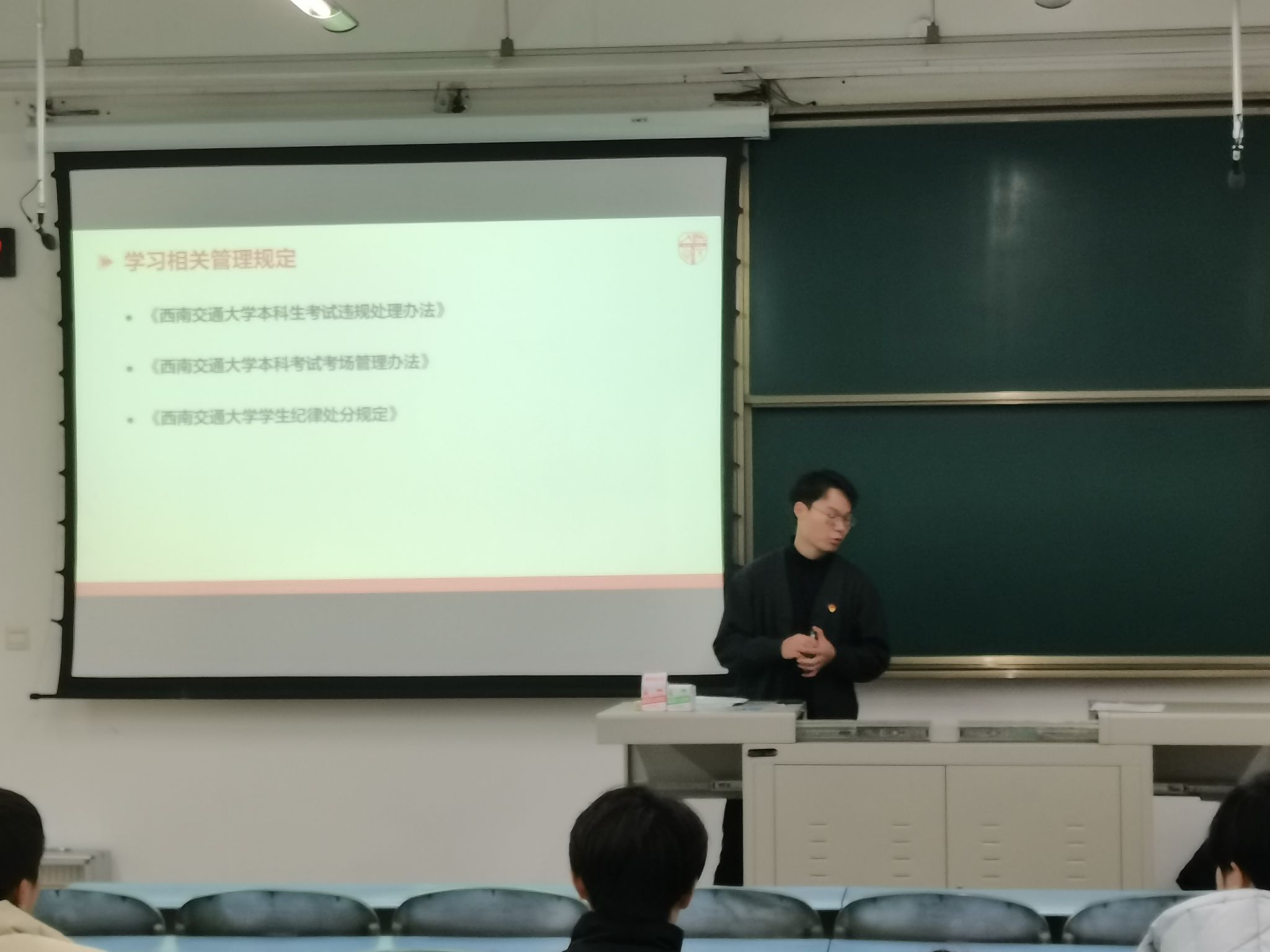 活动伊始,全体党员在现场共同签订《考试诚信承诺书》,由支部书记张翔老师带领大家学习《西南交通大学本科生考试违规处理办法》《西南交通大学本科考试考场管理办法》《西南交通大学学生纪律处分规定》等文件内容。此次承诺书签订以及文件学习不仅是对诚信考试的庄严承诺,更是对学生党组织和全体同学在学术道德方面的严格要求。通过此举,全体党员强化了诚信考试的责任感和使命感,展现了党员在学风建设中的先锋带头作用。
