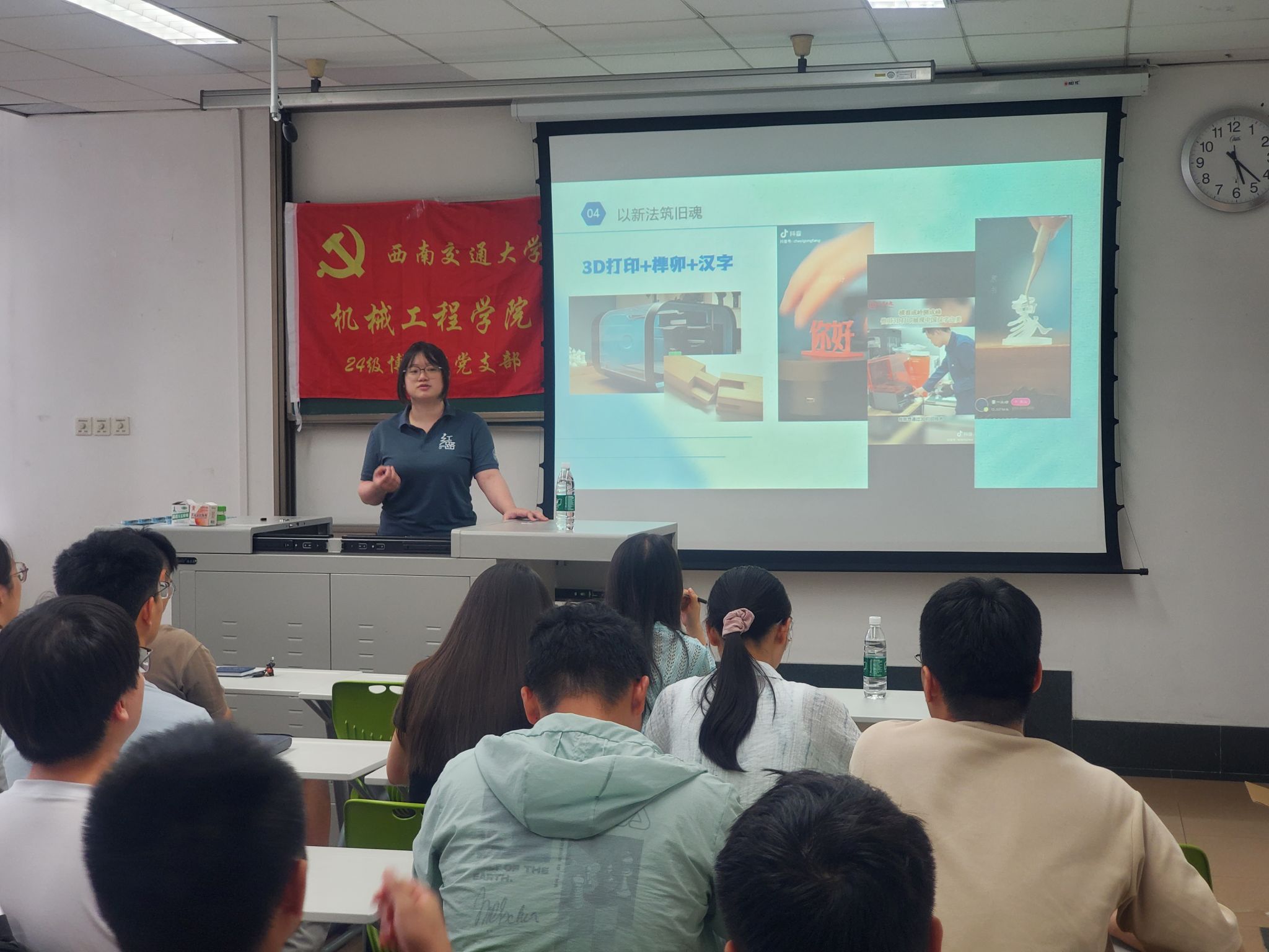 文化铸魂担使命 守正创新启新程——西南交通大学“红路”理论学讲团周诗嫣讲师为BBV体育_BBV(中国)24级博士班党支部讲授文化传承