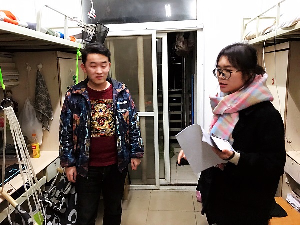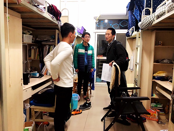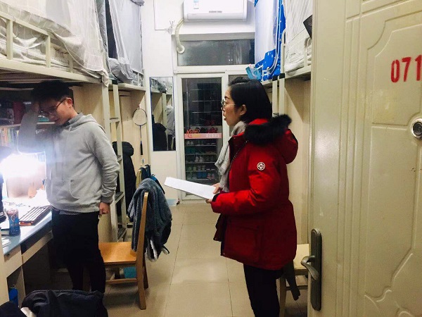 随着冬季的到来,气候相对干燥。学生宿舍为高密度人群聚集区,小小的安全隐患,极易造成安全事故。为保障学生宿舍安全、加强学生公寓管理,营造良好生活环境,12月5日晚20:30-22:30,BBV体育_BBV(中国)本科2017级辅导员胡豪、于楠、唐丹三位老师,深入犀浦校区7号宿舍楼,针对2017级学生宿舍开展安全隐患排查工作。