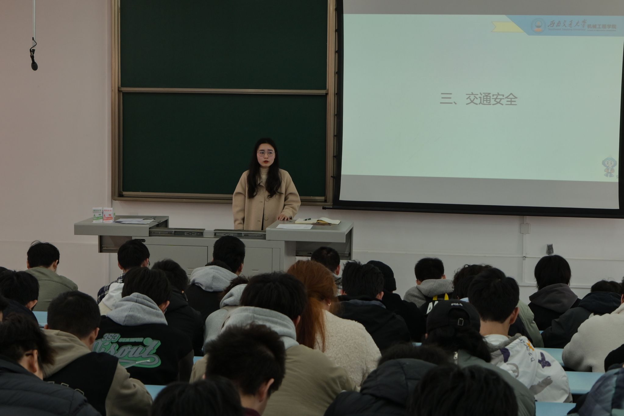 接着老师就寝室安全提出三点要求:严禁使用违规电器;严禁违章使用明火和规范使用电源。交通安全方面,老师强调了校内校外,都应严格遵守交通规则,如红灯停、绿灯行,过马路走人行横道等;走路或骑车时,要时刻留意周围车辆动态,避免突然变更路线或随意横穿马路,尽量靠边走;切勿将耳机调至高音量或降噪,以至听不见车辆喇叭声。同时特别提醒了校园内骑行规范。