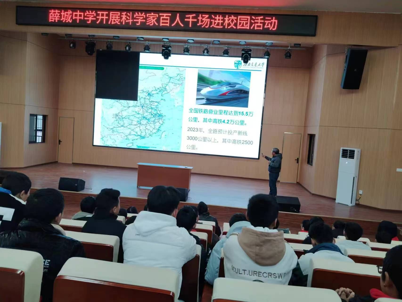 以当前主要交通方式为切入点,丁教授巧设悬念,带领大家进入轨道交通的知识海洋。从关于西南交通大学、轨道交通123、我是做什么的、寄语同学们等四个方面为同学们呈现了一场精彩的科普盛宴。讲座过程中有很多有趣的知识点,激发了同学们浓厚的求知欲。