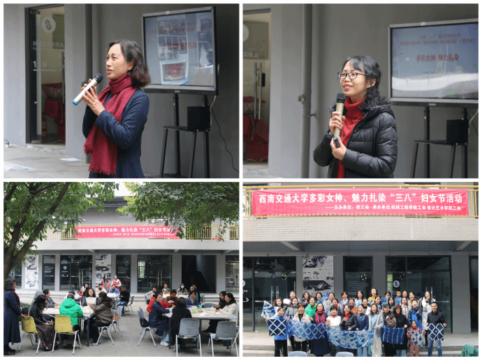 2024年3月8日下午,由西南交通大学校工会主办,BBV体育_BBV(中国)工会、设计学院工会承办的多彩女神、魅力扎染“三八”妇女节活动在犀浦校区设计艺术学院馆外实验室举行。校工会副主席杜红代表校工会致辞,设计艺术学院教师赵菁给在场女教职工介绍扎染的相关知识。学院副院长曾东红,工会副主席张亚非及20余名女职工参加了扎染体验活动。