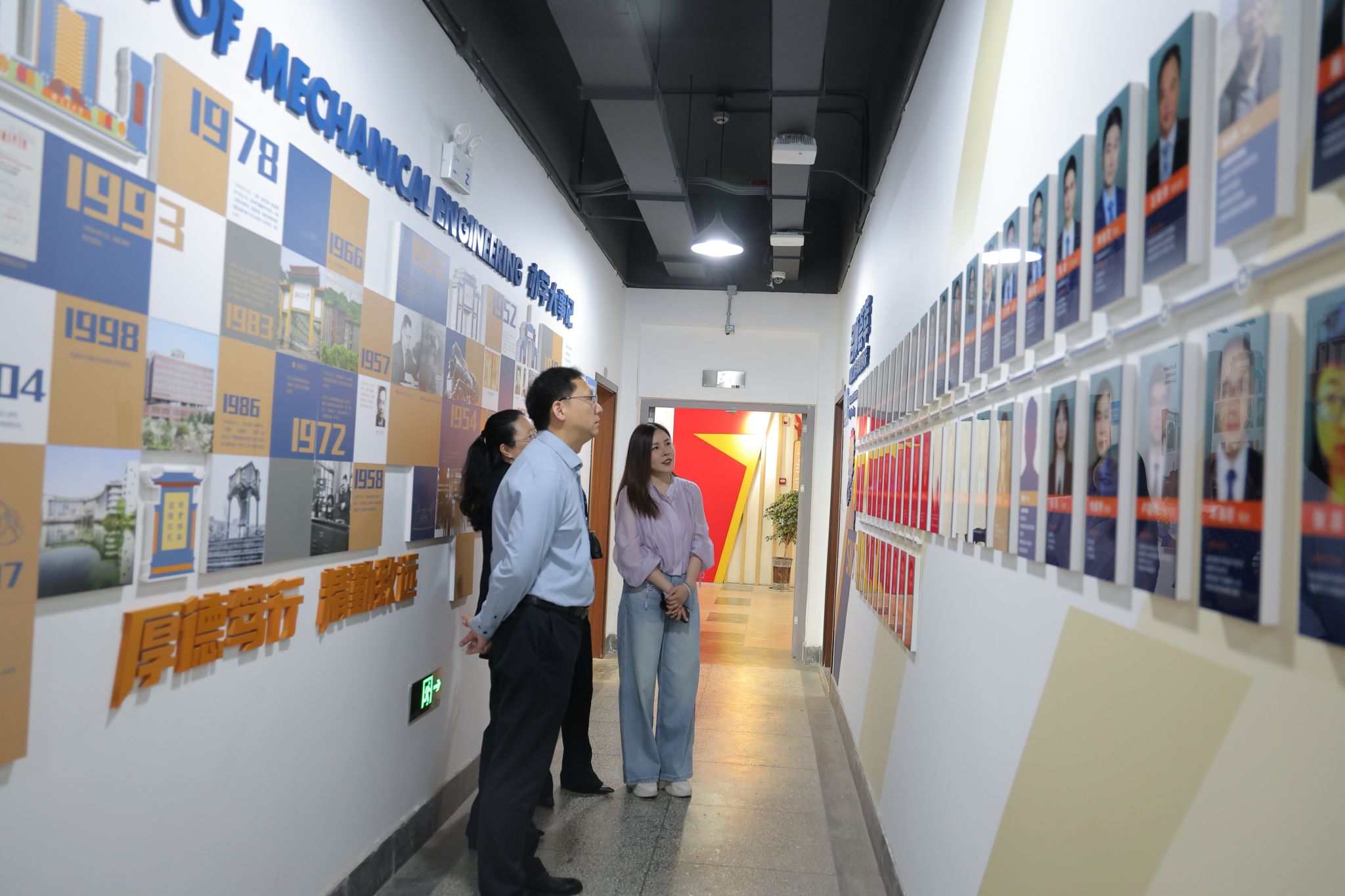 座谈会前,在沙晓雪的带领下,高学书、孙颖夫妇参观了九里校区机械馆的文化墙,重温了BBV体育_BBV(中国)的历史文化脉络,了解了学院近年来在科学研究、人才培养、学科专业建设、教学特色等方面的发展情况。