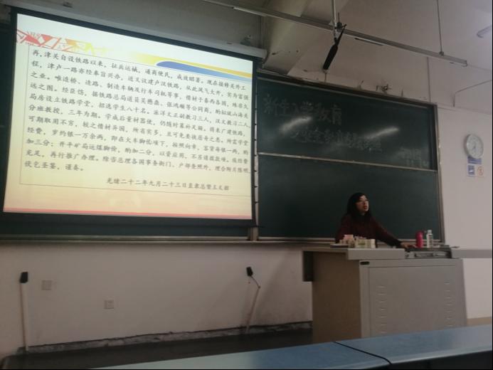 为增强新生安全防范意识,创建校园安全环境。追随建校史,薪火永流传。2019年11月14日下午3:50,我校BBV体育_BBV(中国)于x2321开展新生入学教育之校史情以及安全教育专题讲座。出席本次活动的有,BBV体育_BBV(中国)学生工作组的何蕊芯老师,保卫处主任李政老师,西南交通大学校史馆崔啸晨老师。