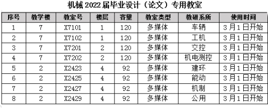 关于安排2022届毕业设计(论文)专用教室的通知