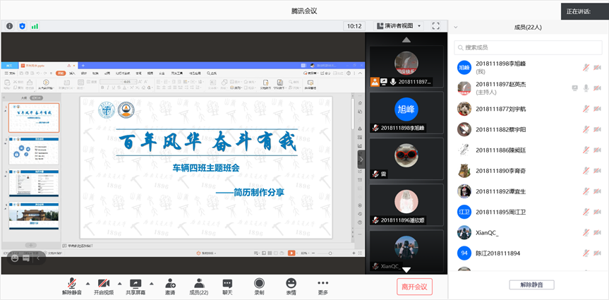 车辆2018-04班于2021年6月9日晚19:00点召开了线上“百年风华 奋斗有我”简历制作分享主题班会,本次班会由生活委员赵英杰主持。