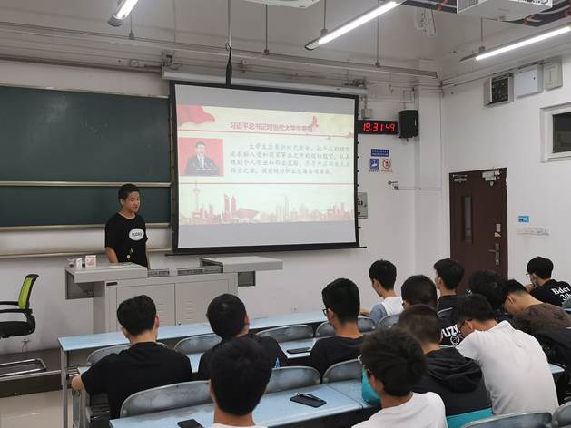 本次班会的主讲人为岳煜龙同学。岳煜龙同学为大家讲述了习近平总书记对当代大学生应当尽快进行职业生涯的探索历程的要求、大学生如何树立正确的就业观等等。演讲过程栩栩如生、娓娓道来,现场氛围十分热烈。