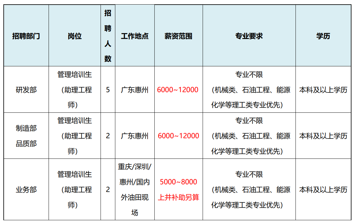 【专场招聘】 百勤能源科技(惠州)有限公司