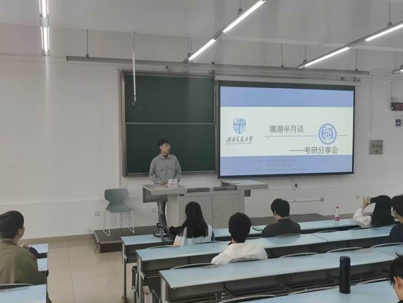 为帮助同学们更好地了解当前考研、保研形势,进一步增强信心、明确目标、科学备考,2023年10月20日星期五,考研主题讲座邀请到了本学院三位优秀的考研成功的学长给大家分享经验,2022级、2021级的学生积极参加了本次讲座。座谈会开始,主持人简单介绍了本次活动,随后把时间留给了三位嘉宾学长分享考研经验。
