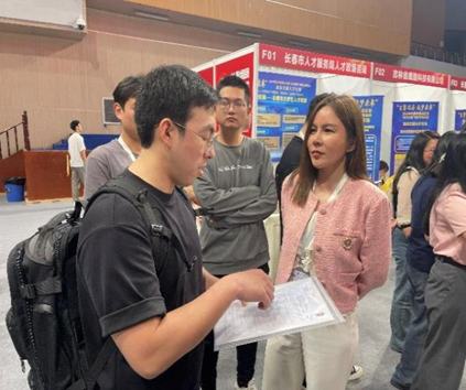 在双选会上,沙书记关心BBV体育_BBV(中国)同学们的就业情况,与前来双选会的毕业生们进行了深入的交流,了解同学们的求职意向。她认真查看毕业生们投递的简历,详细询问了毕业生求职意向,为他们推荐就业岗位。