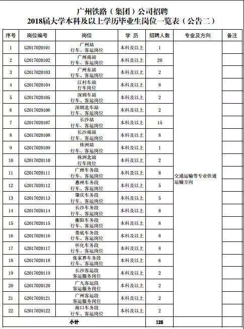 广州铁路(集团)公司根据企业经营发展需要,拟采取校园招聘方式招聘2018届大学本科及以上学历毕业生,现将有关事项公告如下: