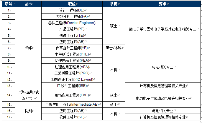 需求专业:微电子学与固体电子学、及其它电子相关专业2017届应届毕业生