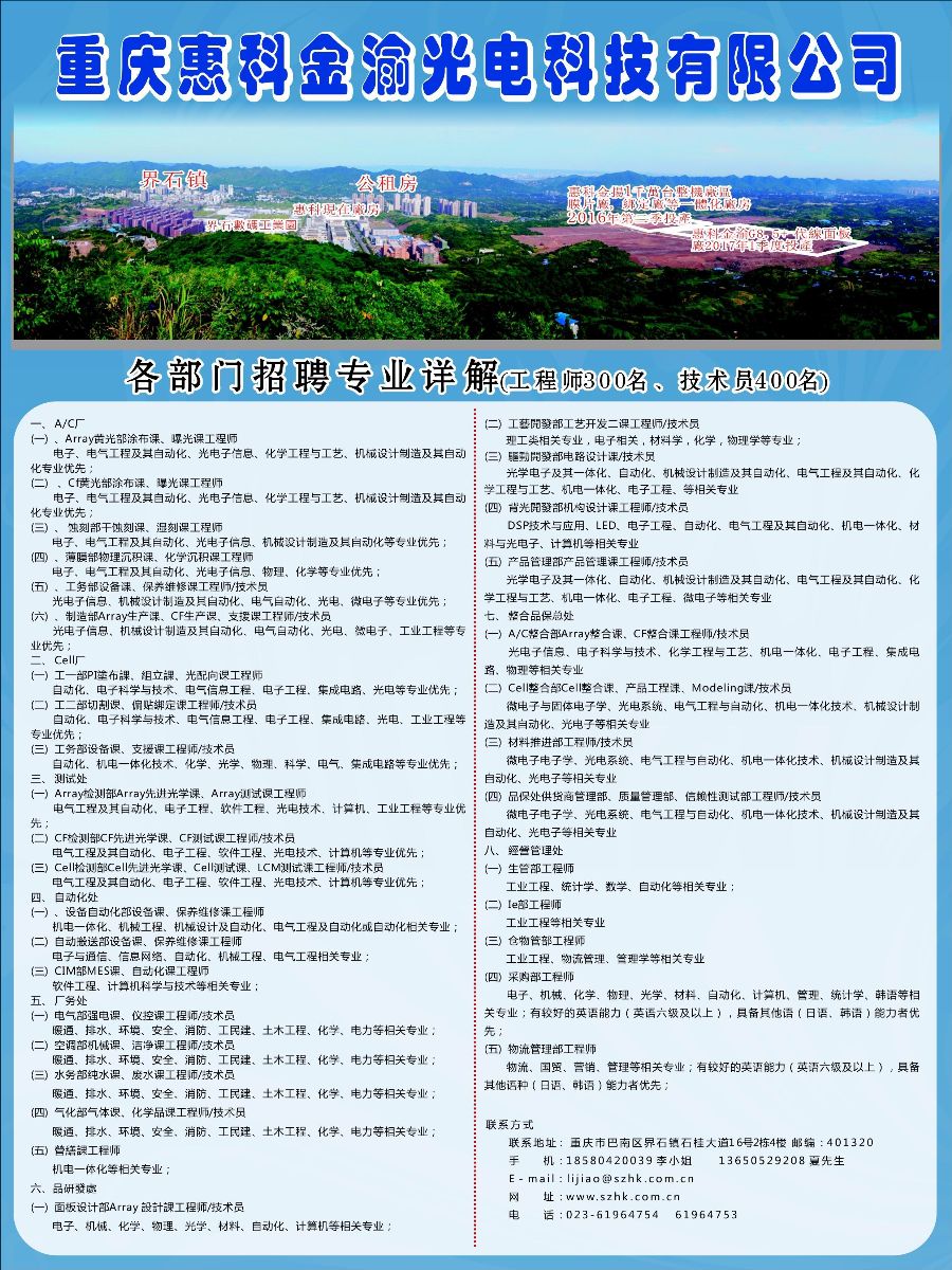 (三) Cell检测部Cell先进光学课、Cell测试课、LCM测试课工程师/技术员