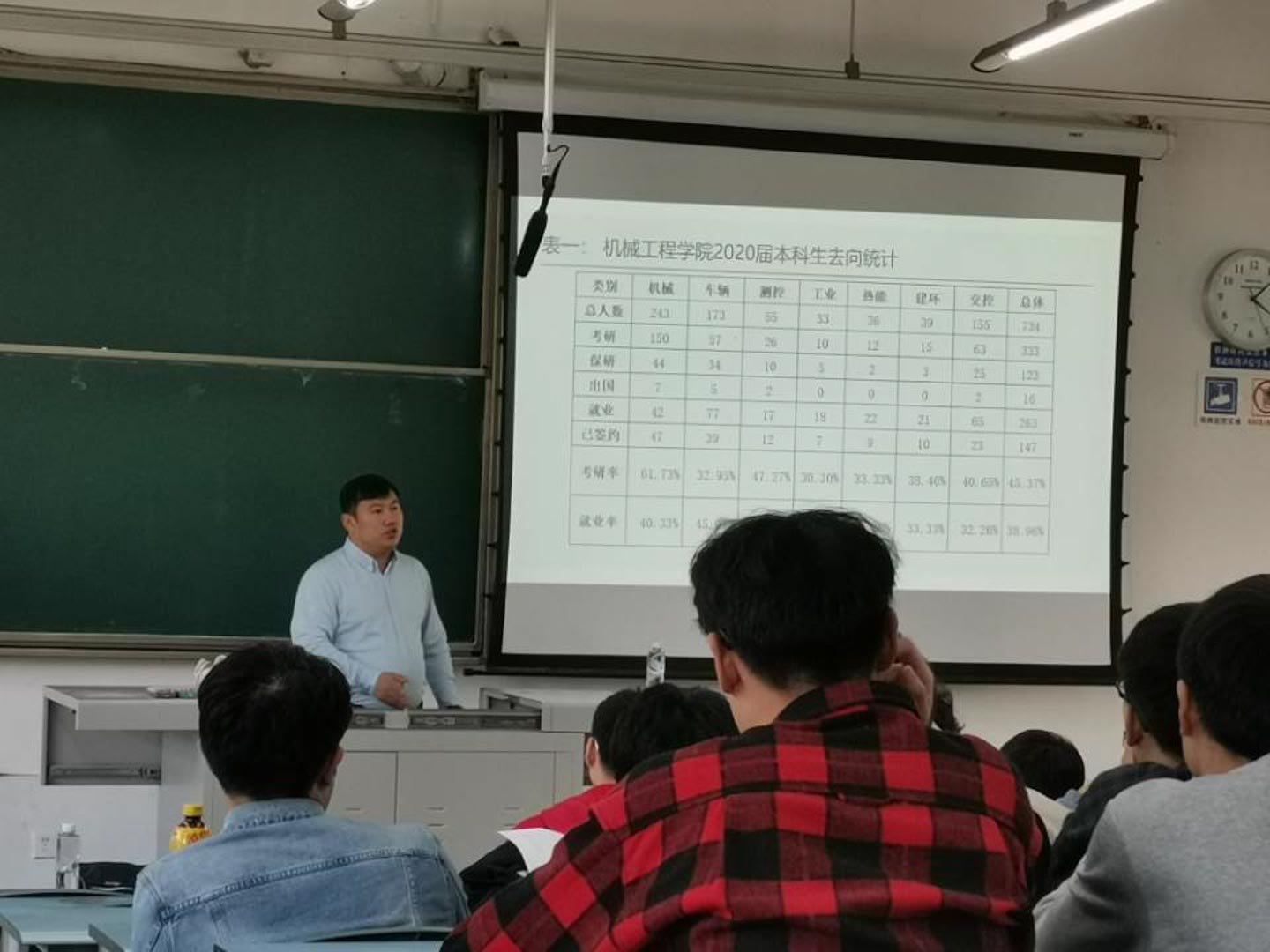 首先开始的是考研学生就业指导会,在会上,孟书记介绍我院的招生情况和各个专业今年的招生指标,并对当前的考研形势、本科生就业情况进行深入分析。对于考研和就业方向,孟书记给同学们提出了宝贵建议并表达了对同学们的美好祝愿,希望同学们都能选到自己满意的方向。