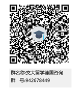 详情请进 “交大留学德国”QQ群咨询,也可到学院咨询徐喆老师(犀浦2号楼2205,028-66366691)、唐阳老师(峨眉2号楼2203,0833-5198015)。