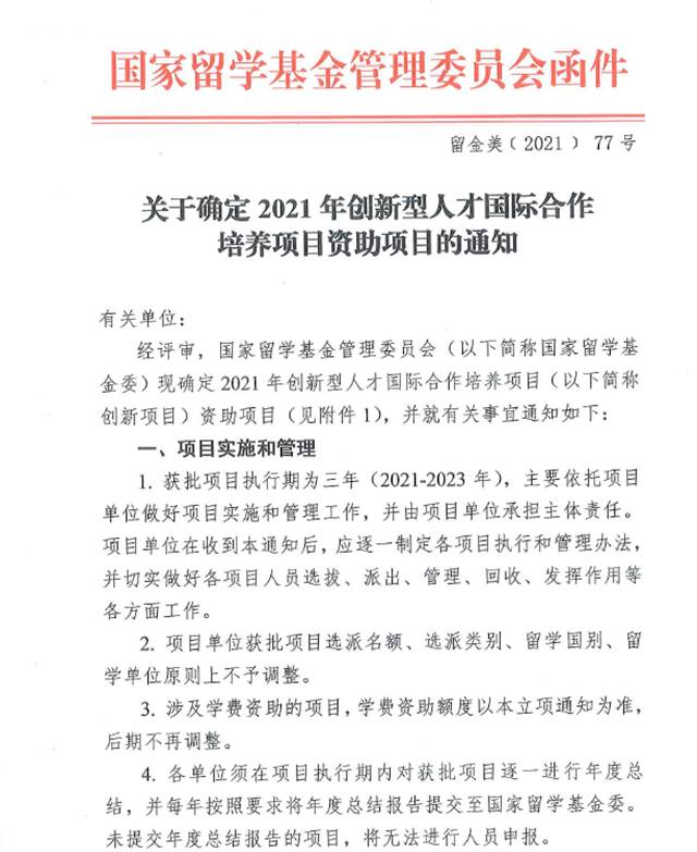 机械学院获得国家留学基金委2021创新型人才国际合作培养项目资助