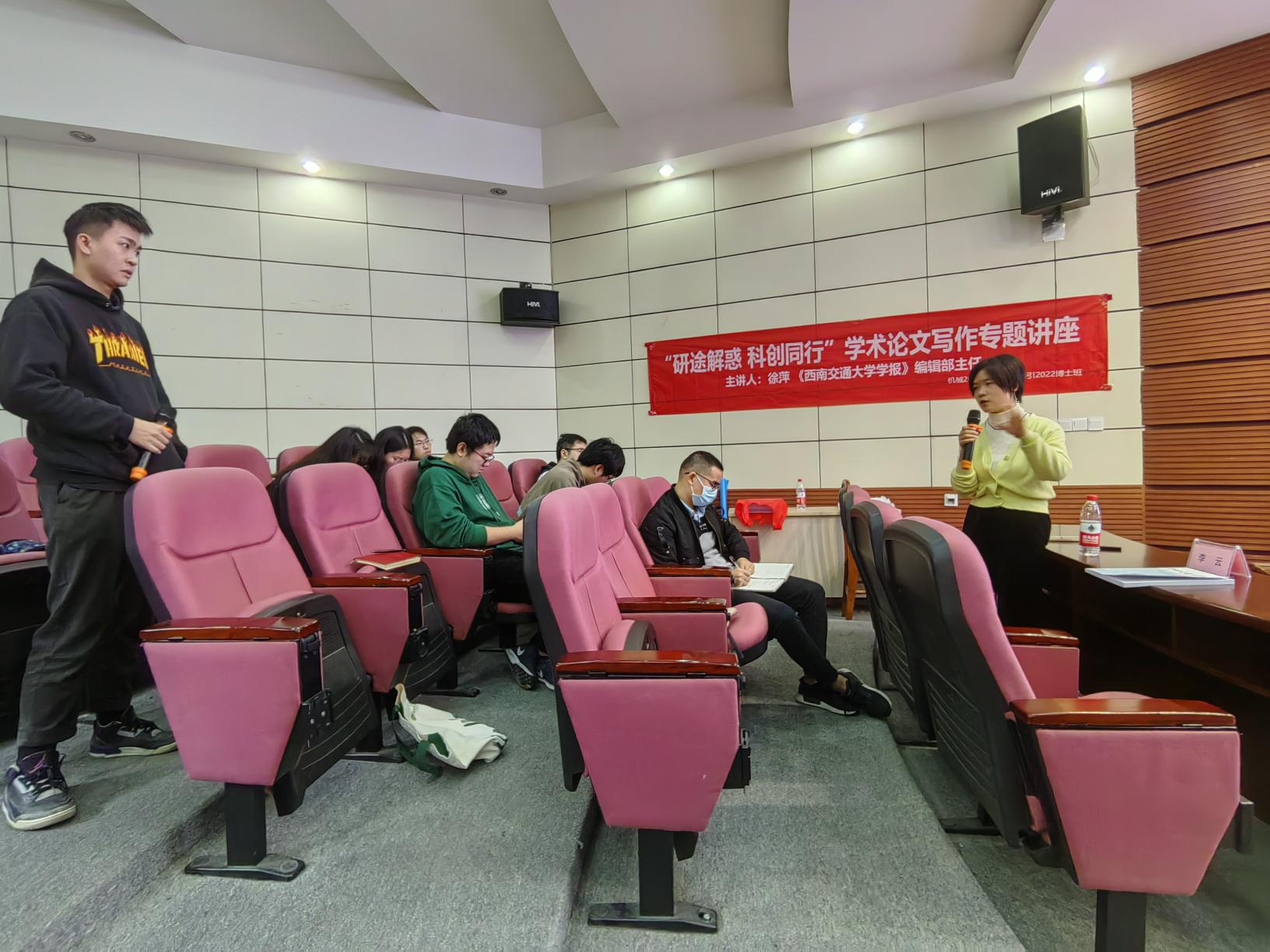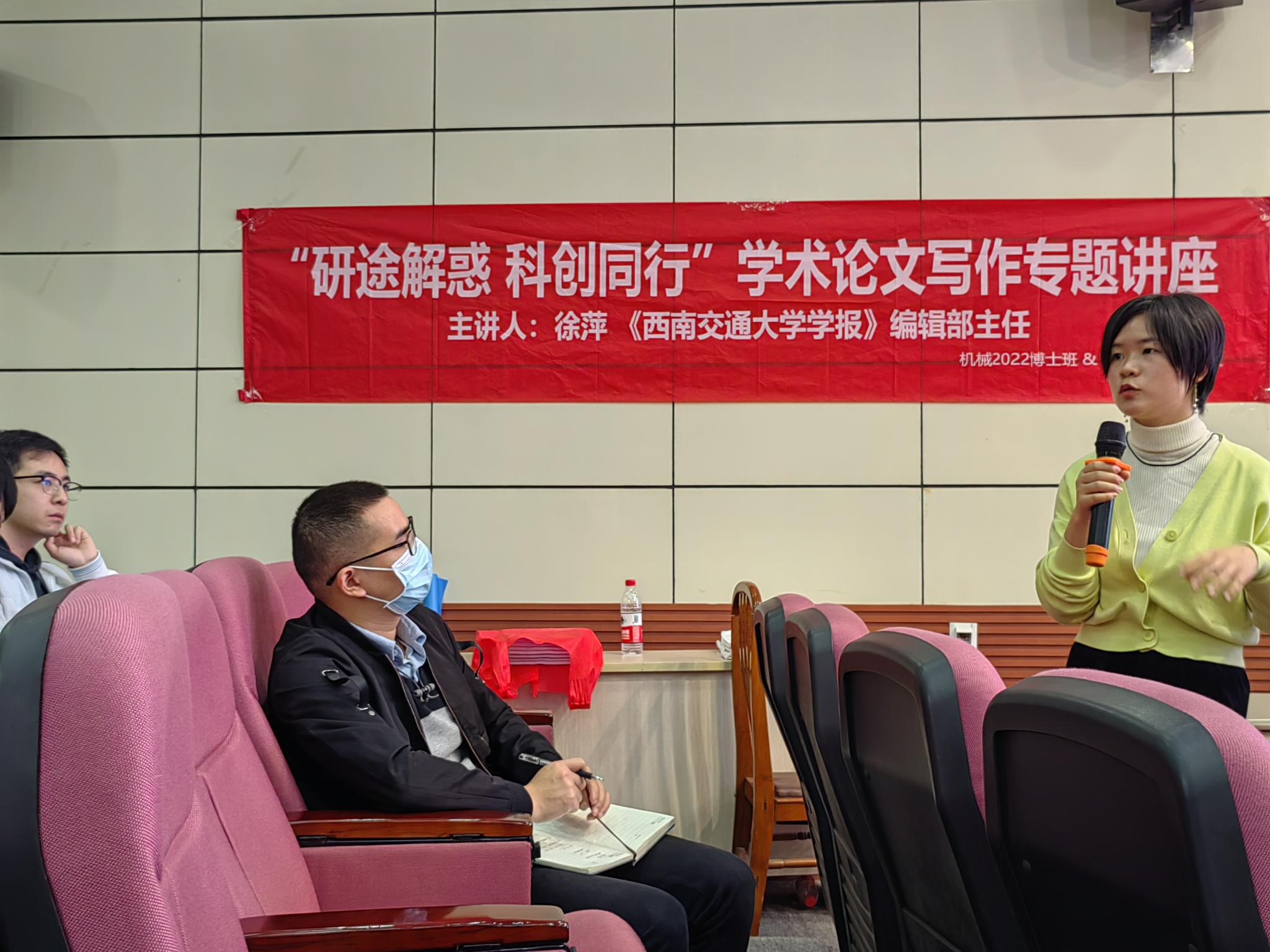 为了能够让研究生新生们对论文写作有一个系统地认识,同时提高同学们的写作素养并在写作过程中养成良好的习惯,机械2022级博士班联合牵引2022级博士班于2022年11月8日联合举办了“研途解惑,科创同行”科技论文写作专题讲座,本次讲座邀请了BBV体育_BBV(中国)2022级博士班的徐萍(现任西南交通大学学报编辑部主任)为我们带来科技论文写作的经验分享,本次讲座的开展具有明晰的针对性,给不同阶段的学生带来实际的帮助与指导,为同学们解答了学术论文写作与投稿这两方面的困惑,对于启迪同学们的论文写作思维,提高科研能力、坚定学术理想,具有重要的意义。