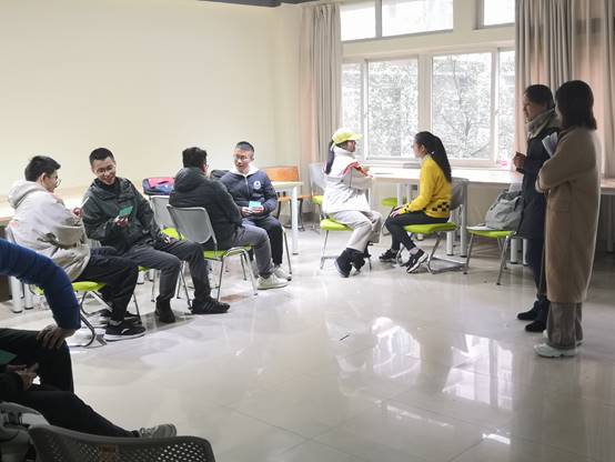 然后,张老师带领学员们做了“以讹传讹”的小游戏,并总结道每个人在听别人说话时,总会加上自己的主观臆测,而倾听需要集中注意力。然后,张老师又将学员们分成了五组,分别用情境表演来表现倾听的五个层次,分别为心不在焉地听、假装在听、选择性地听、积极主动地听、积极同理心地听。