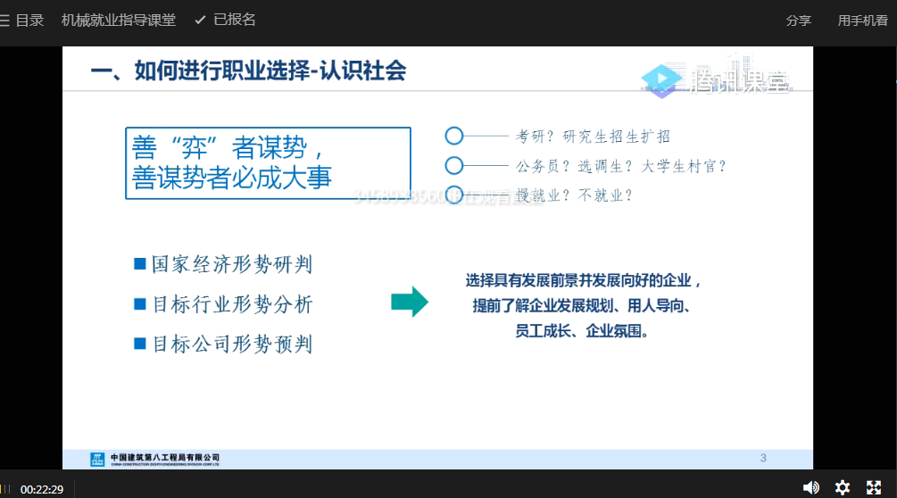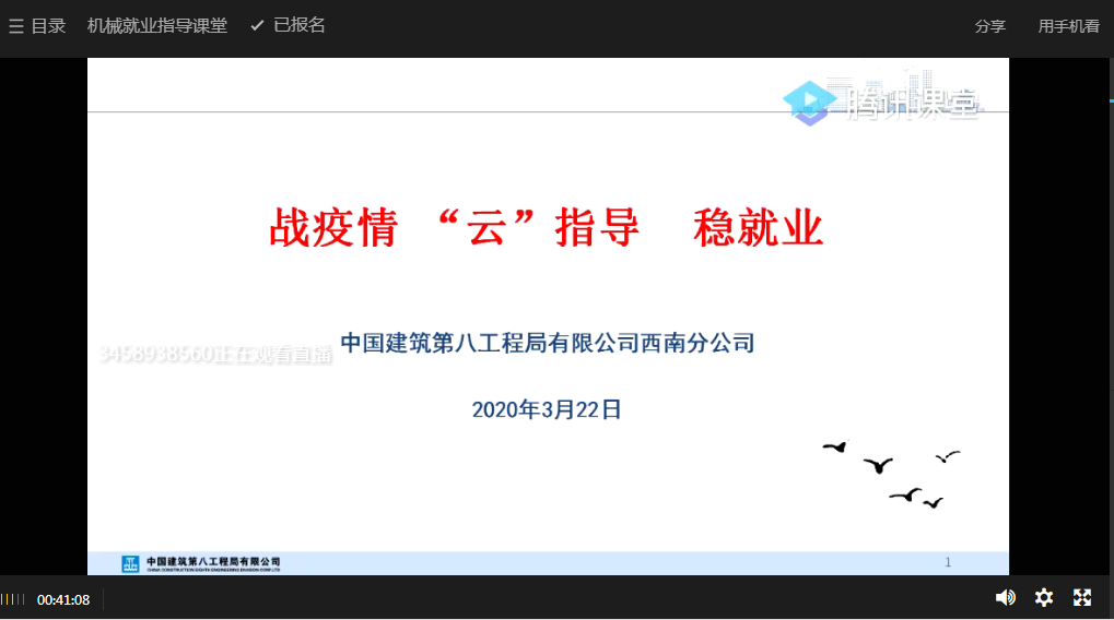 3月22日下午3:00,BBV体育_BBV(中国)第1期“名企HR开讲啦”顺利开讲,本次开讲嘉宾是来自中国建筑第八工程局西南分公司的安全总监王伟、人力资源部经理吴胜兰,来自不同学院不同年级的360余名同学参与了此次线上讲座。