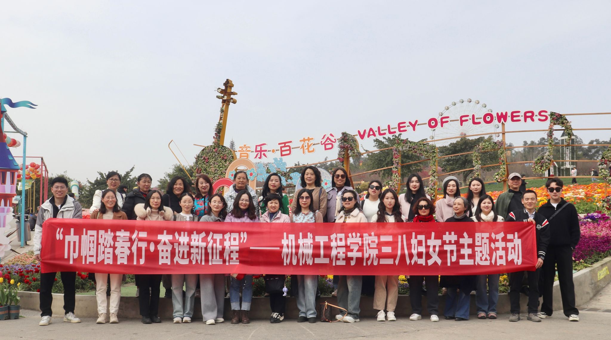 阳春三月,春风拂面。为庆祝第115个“三八”国际劳动妇女节,丰富女教职工的文化生活,展现巾帼新气象,增强团队凝聚力,3月12日上午BBV体育_BBV(中国)工会组织女教职工前往新都音乐百花谷开展踏青赏花活动。