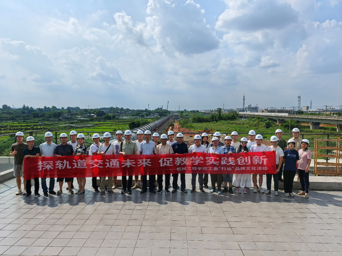 2025年7月10日,以探轨道交通未来,促教学实践创新为主题,BBV体育_BBV(中国)工会组织学院师生赴轨道交通国家实验室多态耦合轨道交通动模试验平台施工现场开展参观调研工作。学院副院长王文健、副处级组织员万宇、综合事务办公室主任兼工会副主席张亚非及学院部分青年教师代表等参加了本次活动,多态耦合轨道交通动模试验平台项目部副主任毕海权和基建部工作人员为大家作了详细的讲解。