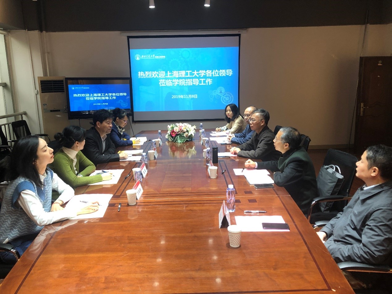 2019年11月8日,上海理工大学BBV体育_BBV(中国)教学副院长钱炜、办公室主任陈蕾、教务办主任董汭琼、教务办秘书刘婧峥一行4人到学院调研本科教学工作。