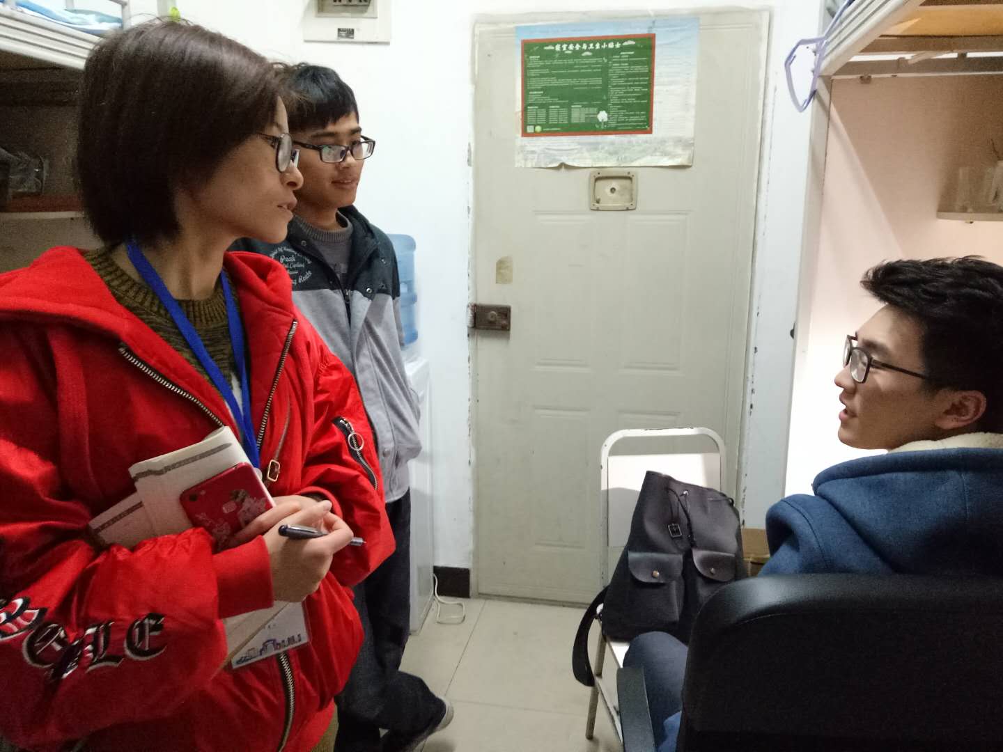 2018年3月4日晚,学生工作组全体辅导员分别前往所带年级学生寝室进行假期回校学生点名工作,旨在摸排学生返校情况,鼓励全体同学以全新的姿态投入到新学期学习中。