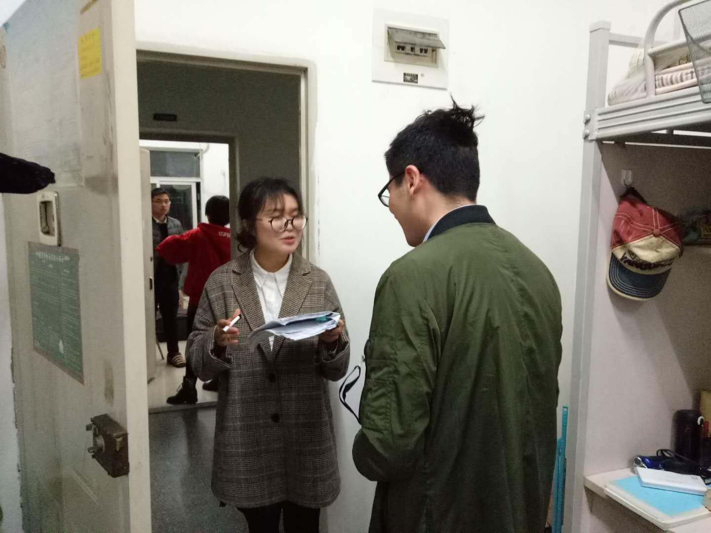 在寝室走访点名过程中,低年级同学返校情况良好,大四年级未返校学生数量相对较多。除此之外,辅导员检查了学生寝室卫生、寝室安全状况等相关工作,对新学期各专业课程体系、课程要点向同学们进行了简单说明。