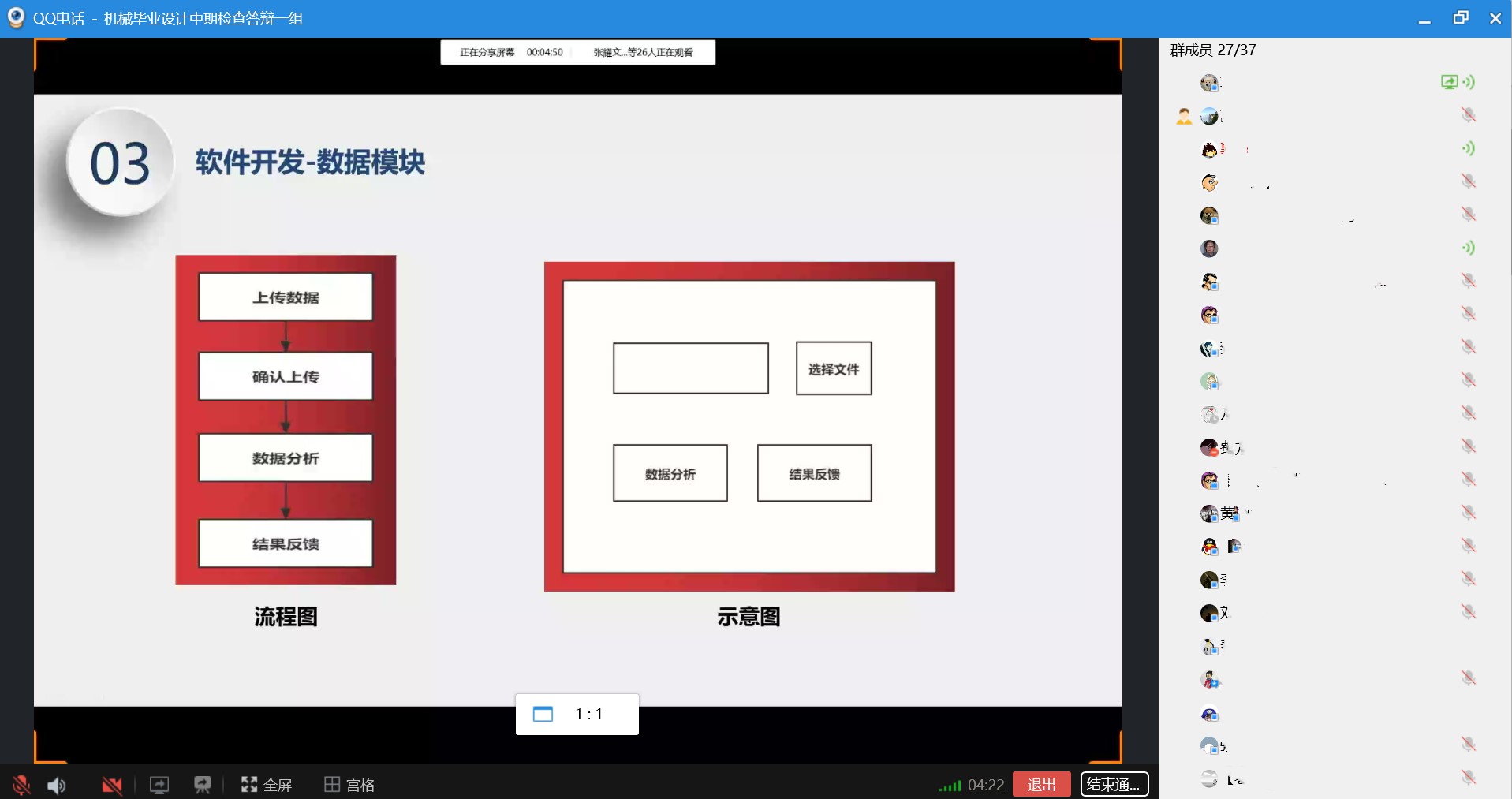 为充分了解学生毕业设计(论文)进展情况,学院发布《学院2020届本科生毕业设计(论文)校级中期检查抽查答辩安排》,对学生答辩时间和答辩内容进行要求。每位学生答辩时间为8-10分钟,围绕三个部分内容进行汇报:1.对毕设题目的理解;2. 目前毕设完成情况;3. 存在的问题或下一步工作计划。答辩前,各答辩小组秘书组织师生进行了网络测试,学生熟悉平台使用和屏幕分享等功能,并对线上答辩有可能出现的情况进行了周密的预案。答辩中,评委老师根据学生的汇报,针对毕业设计(论文)中出现的问题提出解决方案和参考意见,更好的帮助学生明确下一步工作方向。