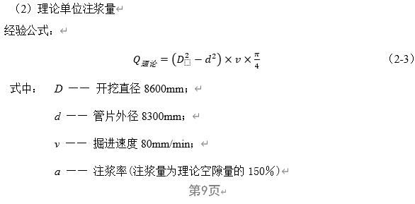 根据工程概况确定了盾构机主参数,计算确定了同步注浆中每环管片的理论注浆量,理论单位注浆量与实际注浆量等参数(详见下页)。确定了包括浆液,砂浆罐,注浆管路,注浆泵在内的主要零部件。确定上述部件的工作要求。确定二次注浆方案,初步确定工作条件。
