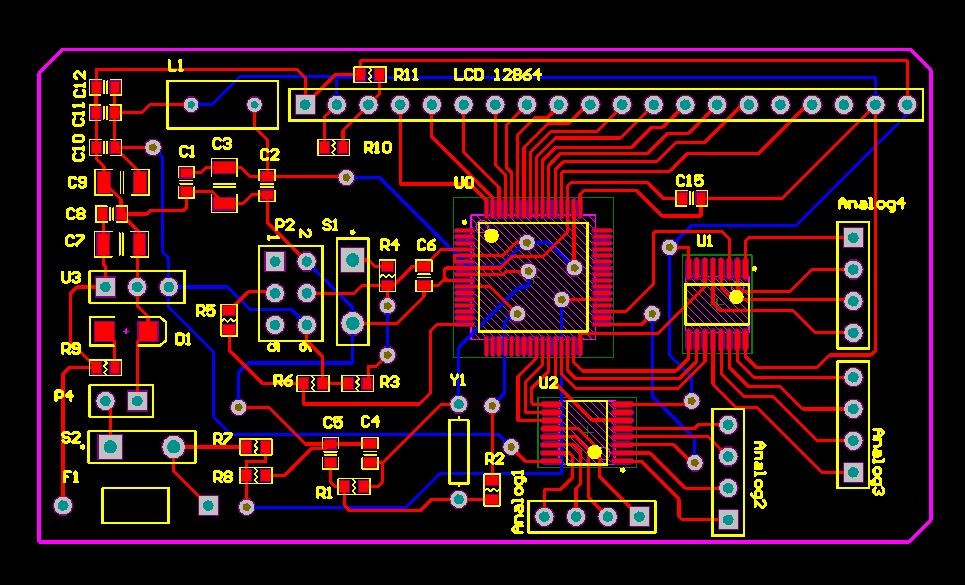 (2)根据电路原理图绘制了用于制板的PCB图