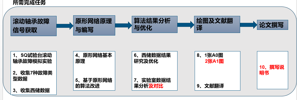 目前所编写的算法对公开轴承故障数据分类时精度良好,达到了预期要求。SQ滚动轴承故障振动信号的实验数据已完成收集工作,优化的算法对该实验数据的分类效果良好。文献翻译已经完成,绘制完A0及A1图,论文已完成大部分写作。