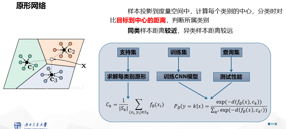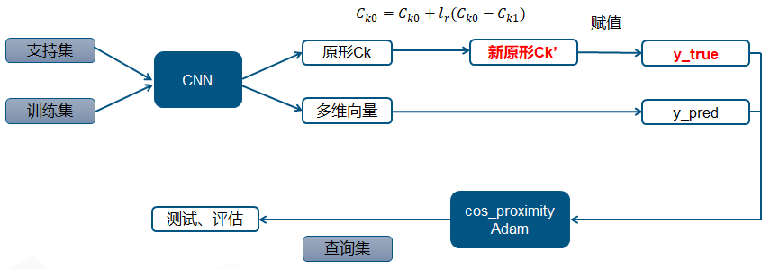 (2)首先支持集数据从网络输出后,并不进行训练,完成映射关系计算原形,即通过每类样本数据的均值来计算。