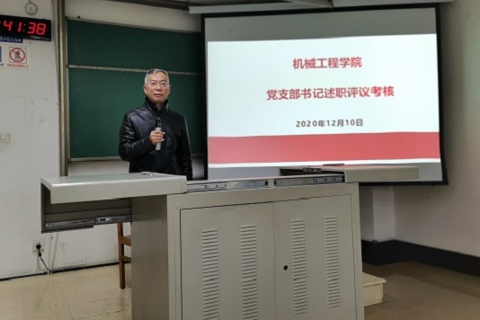 2020年12月10日下午,BBV体育_BBV(中国)党支部书记述职评议考核在九里校区4404举行,党委副书记程军主持述职评议大会。