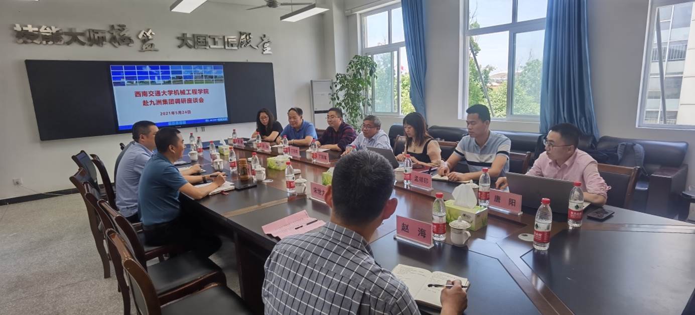 在座谈会上,九洲集团科技管理部副部长陈君介绍了九洲集团的发展历史沿革、生产经营、科研和产教融合情况,装备制造中心机械制造工艺室主任任清川介绍了九洲集团与西南交通大学在产教融合项目中人才培养、中德合作、成果转化等方面的合作模式和工作规划。丁国富副院长介绍了“交大-九洲电子信息装备产教融合示范项目”的申报过程、实施进展和后续工作安排,并针对项目中存在的一些问题与九洲集团进行了深入的研讨。廖先伟副总经理对学院一行来访表示欢迎,同时对西南交大长期以来的支持表示衷心感谢,希望依托“交大-九洲电子信息装备产教融合示范项目”做实已有合作,同时希望双方在智能制造、关键技术科技攻关、高端人才培养、深层次产教融合等方面进一步加强合作。