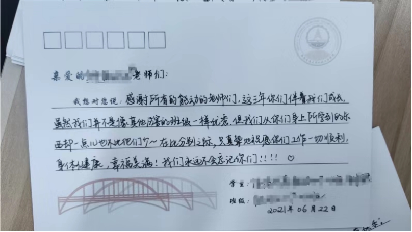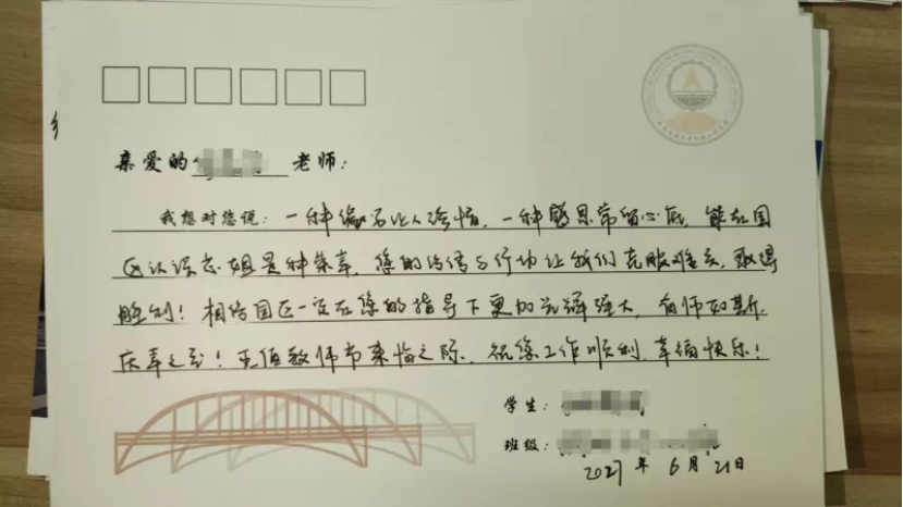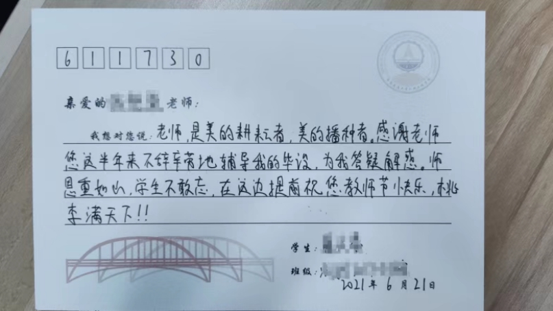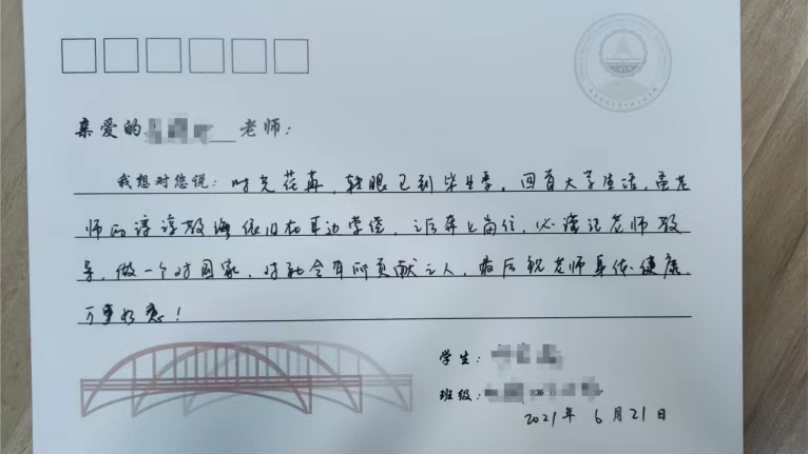 我想对您说:感谢您毫无保留的教导和指引,从新生研讨课到毕业设计,您都给我留下人生中宝贵的财富。谢谢您,祝您工作顺利,生活幸福!