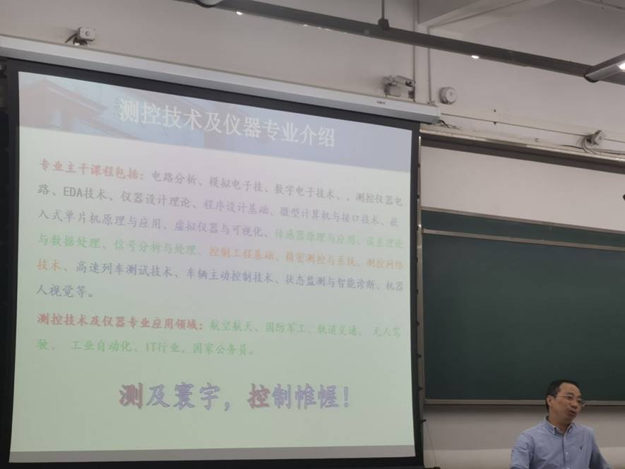 首先,院长助理丁军君老师向各位同学讲解了专业分流的方向、依据、规划、规模和安排。随后,陈春俊、孟祥印和郭鹏老师分别对测控技术与仪器、机械设计制造及其自动化及工业工程三个专业的历史渊源、开设课程、师资力量、科研成就以及就业方向等基本情况进行了详细的介绍。