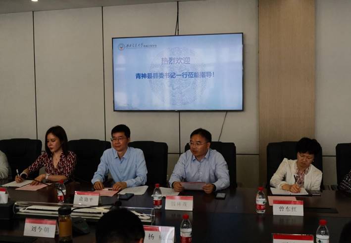 4月17日上午,青神县委书记刘今朝率队,青神县相关部门领导、企业代表等一行到BBV体育_BBV(中国)开展交流研讨,学院党政班子成员参会,会议由袁艳平书记主持。